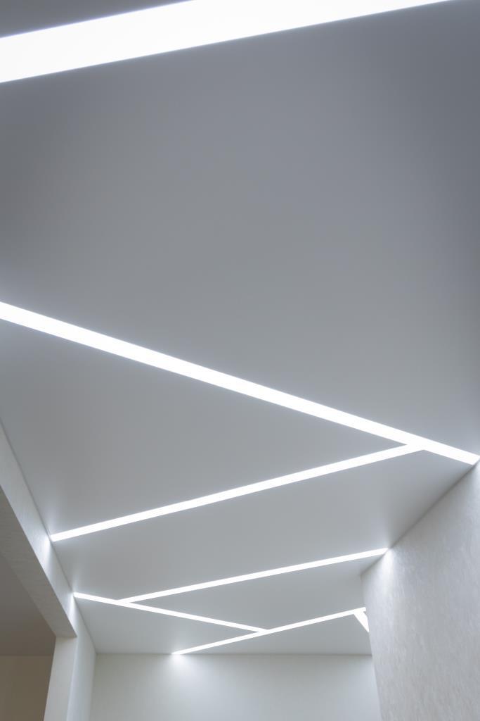 Світлові лінії інтегруються в натяжні стелі, формуючи стильні, мінімалістичні світлові доріжки, які підкреслюють геометрію приміщення та додають йому об'єму.